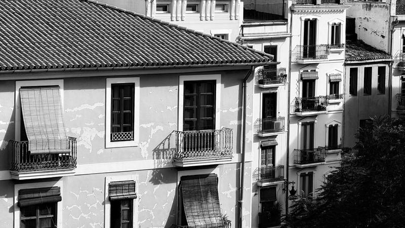 Fotografía en blanco y negro de arquitectura encontrada en El Carme