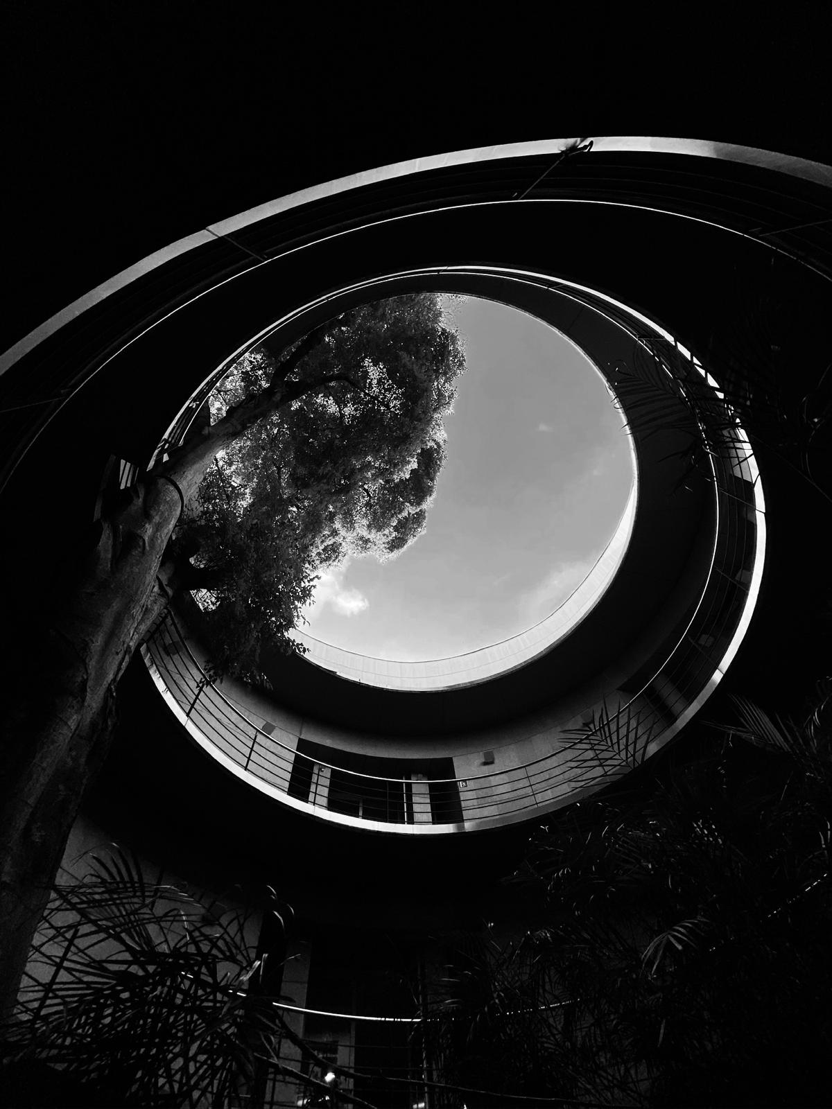 Fotogafía en blanco y negro de arquitectura encontrada en El Botànic